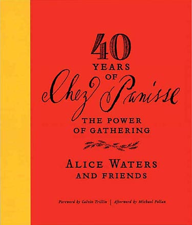 40 Years of Chez Panisse : The Power of Gathering by Alice Waters and Friends, an album that chronicles the life of Chez Panisse from germination to the maturity with “archival material and photographs—menus; invitations; pictures of Alice at the restaurant and around the world, with those who have passed through her life—and interviews from public figures and cooks who have been inspired by or mentored at the restaurant.”